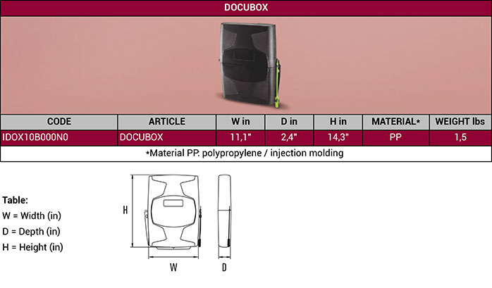 The surface carbon finish of our document holder for truck grants greater scratch resistance and a modern look; Docubox is customizable with the customer's logo in relief, it is available in black colour and in boxes of 6 pieces.