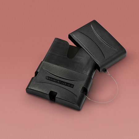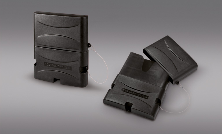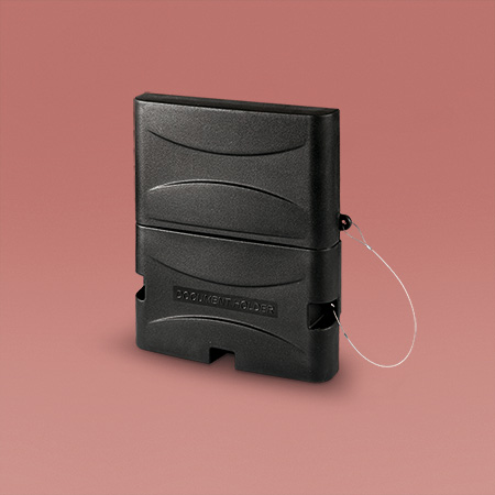 The INOX cable ensures that the plastic document holder is closed and prevents accidental loss of the cover; the POD content can be secured with a padlock (not supplied) simply by matching the two slots of the cable and passing the arch of the padlock (not supplied) through them.
