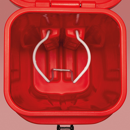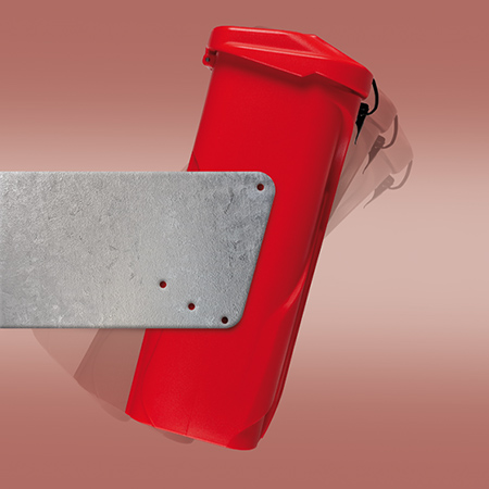 Rocket 6 has a flexible extinguisher holding system that allows the use of fire extinguishers with a diameter from 150 to 170 mm and a maximum height of 570 mm; this element is made of metal and it’s already installed inside the top loading fire box Rocket 6. The plastic coating gives to the tank holding system corrosion resistance, ability to reduce vibrations and at the same time favors the extraction of the fire extinguisher when necessary.