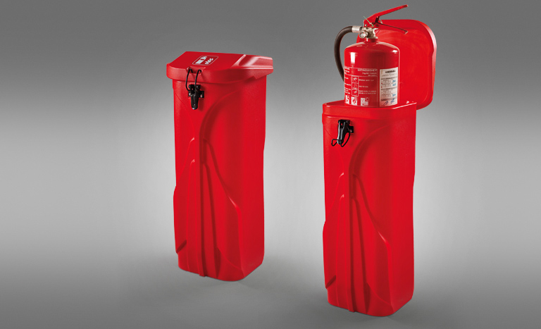 Rocket 6 rotomoulded in polyethylene is totally recyclable like all the models of fire extinguishers cabinets for trucks produced by Co.par. Srl.