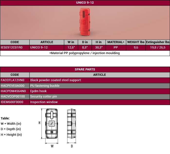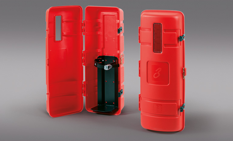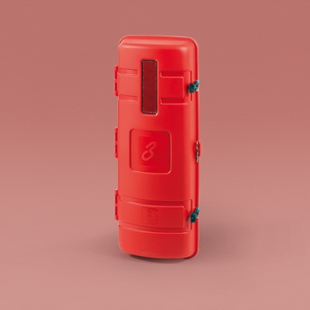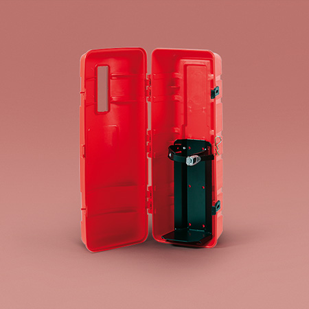Firebox for 20-27 lbs extinguishers injection moulded in 1st choice PP, fully recyclable.