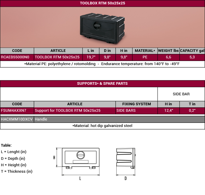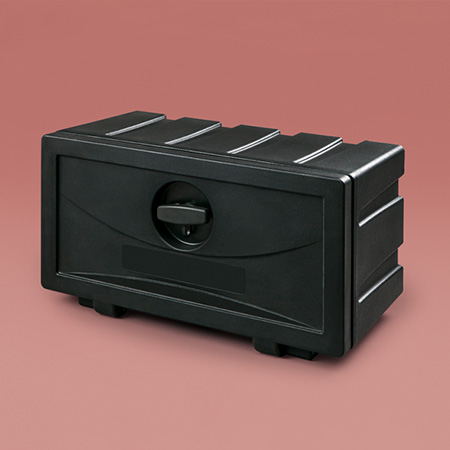Plastic truck toolbox rotomoulded using first choice recyclable PE.