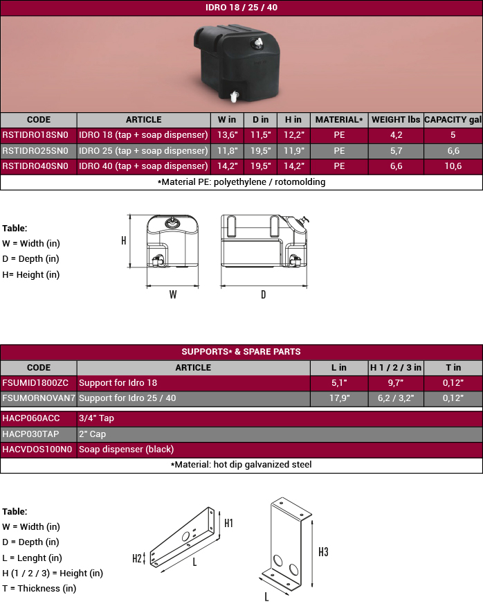 • Models capacity: 5 gal - 6,6 gal - 10,6 gal.